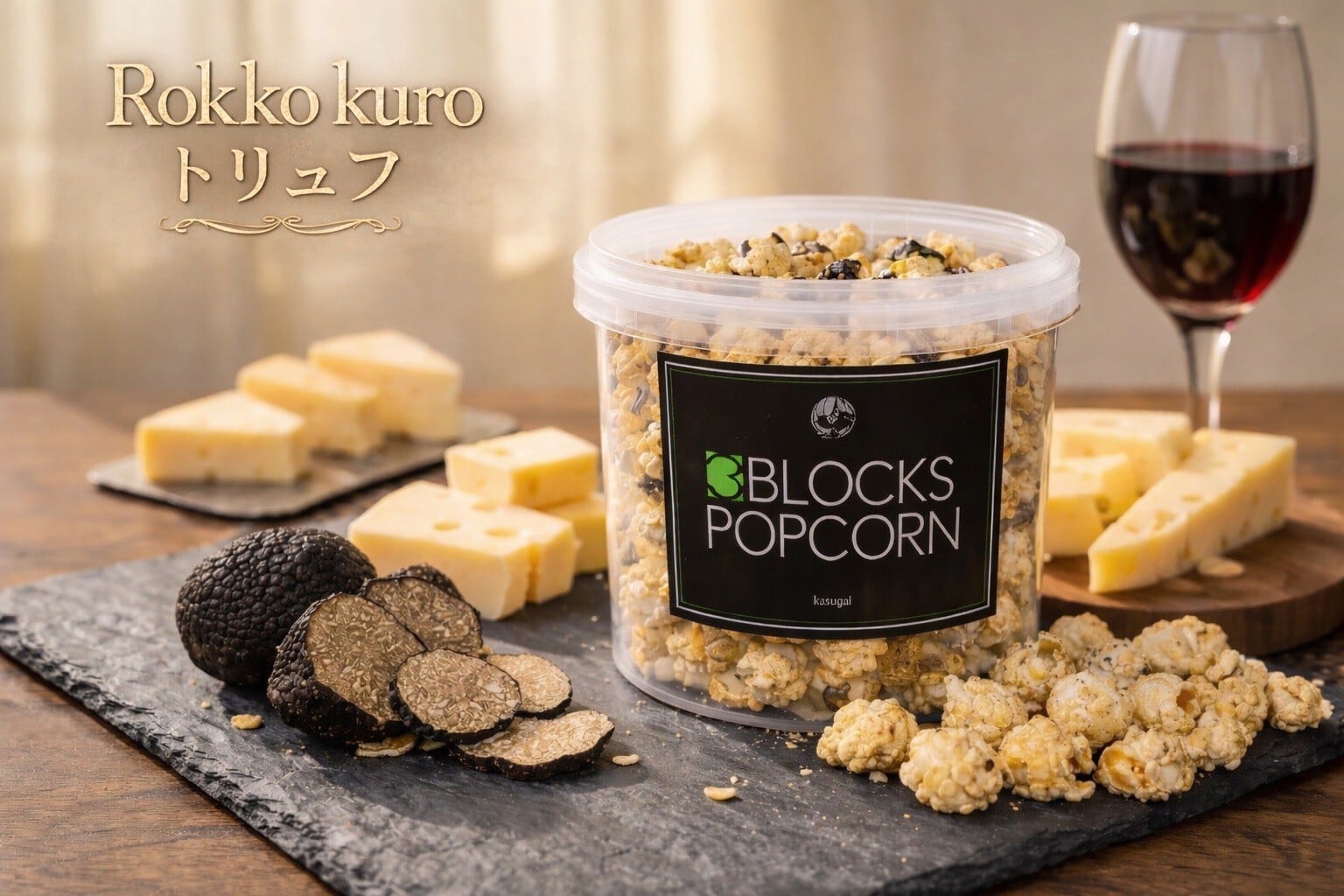 Rokko(六甲チーズ)のコクに、香り高いトリュフを合わせた贅沢なポップコーン。