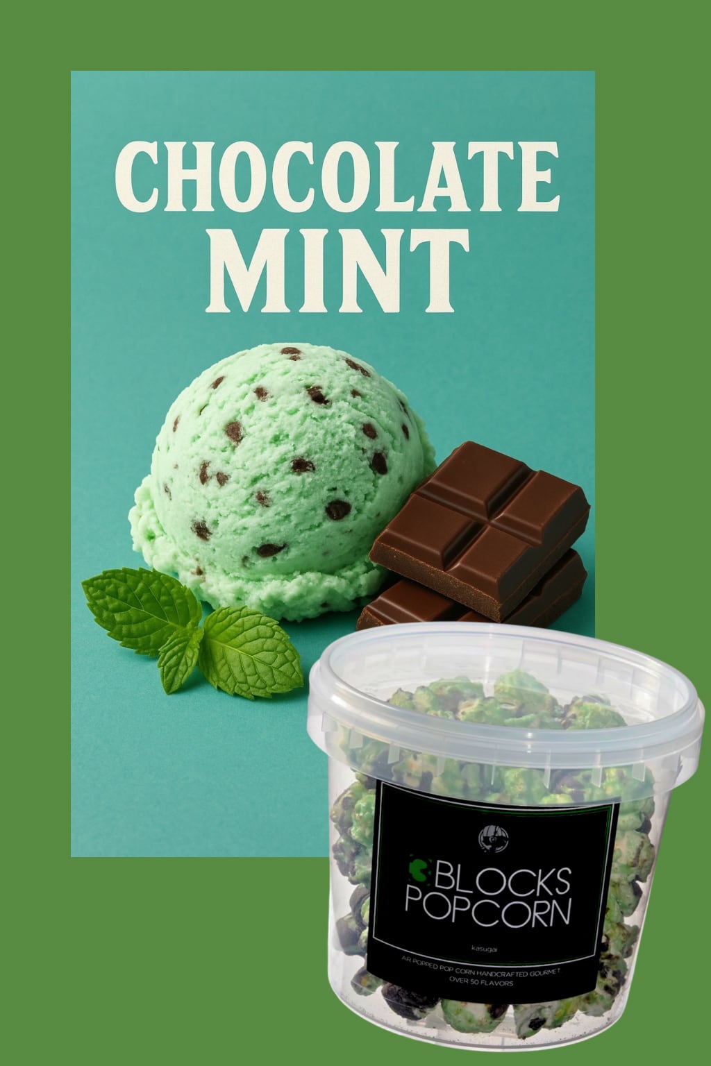 【チョコミント】のポップコーン!!フランス産の口どけの良い滑らかなチョコが掛かっておりミントを包み込みます。Lサイズです。
